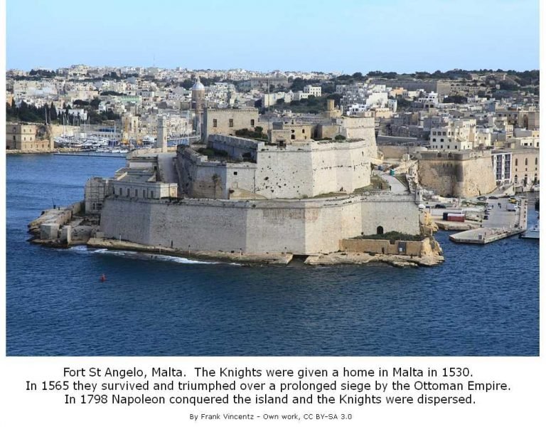 What follows is a very brief history of the Order of St. John of Jerusalem, Knights Hospitaller (Malta) following its historical pathway from Jerusalem (1113-1187) – Acre (1187-1291) – Cyprus (1292-1311) – Rhodes (1311-1523) – Malta (1530-1798) – Russia (1798-1917) – France ( 1917-1962) – America (1962-1990) – Malta (1990-to today). Readers who have the interest might explore the rich tapestry of the Order of St. John contained in a treasury of larger, more detailed, works presented in the notes that follow this section.