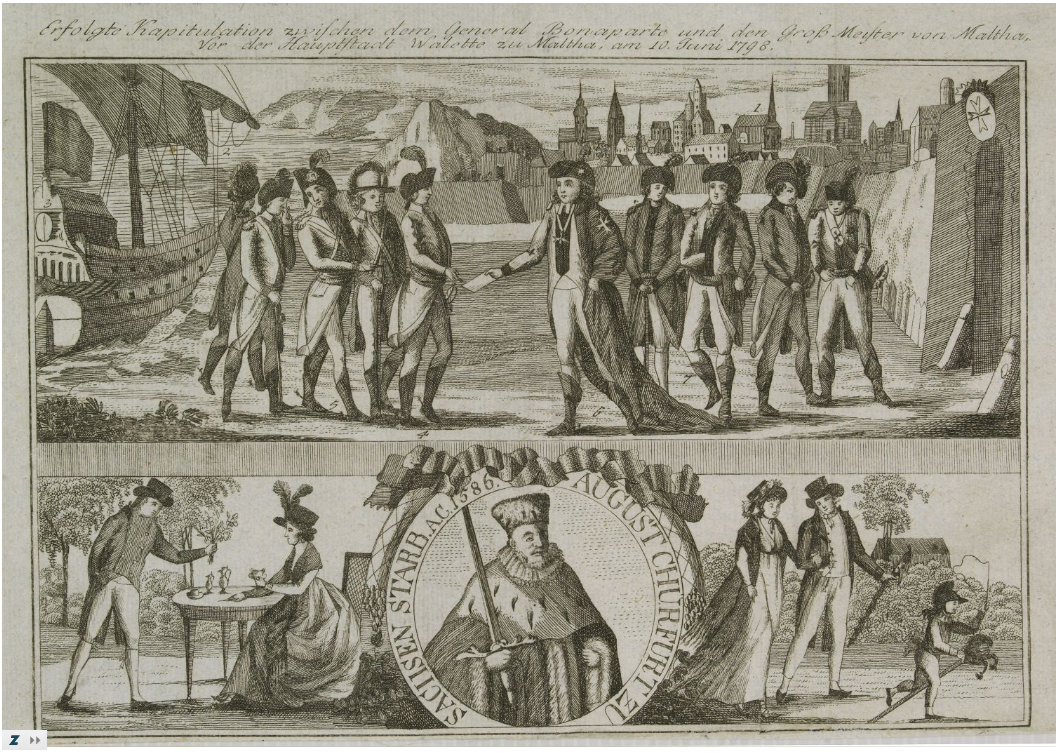 The then Grand Master – Ferdinand von Hompesch zu Bolheim – left, with only a few knights [1], for Trieste, in Austria (now Italy) on June 18, 1798 thus ending that era’s involvement of the Order with the Island of Malta.