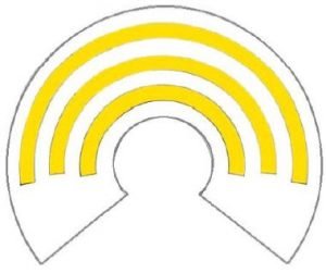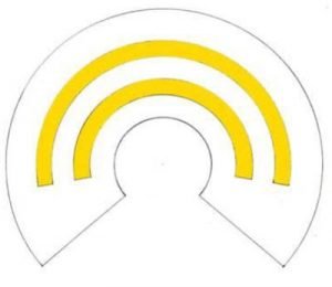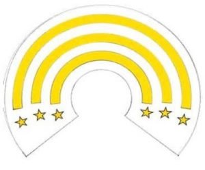 Neck ribbon with one gold stripe and bearing the insignia of the Order.